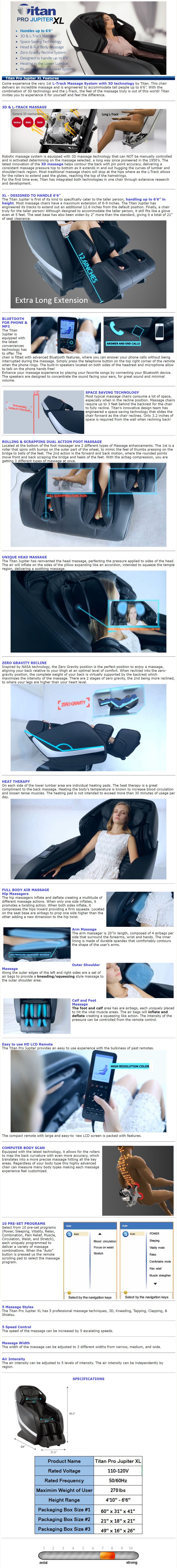 You can comfortably receive a massage that begins at your neck and continues down the length of. The titan pro jupiter xl is a perfect massage chair for just about anyone and can massage a user as tall as 6'6. The titan brand has some reliable models. Select the item up to 6 chairs to compare, click the compare button to see the result.